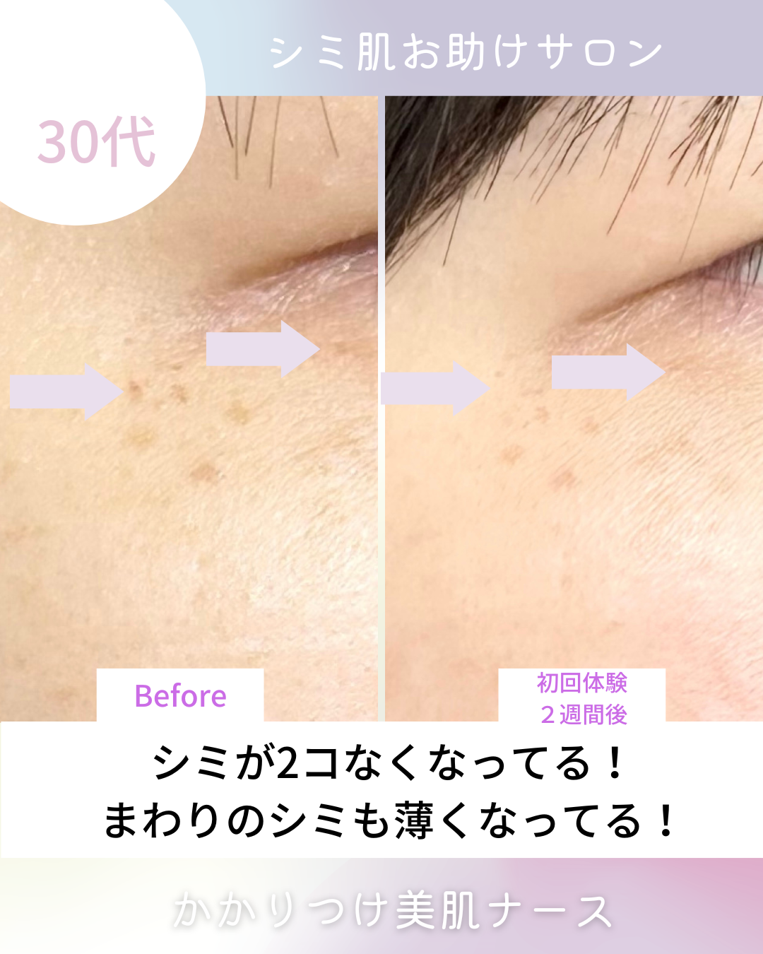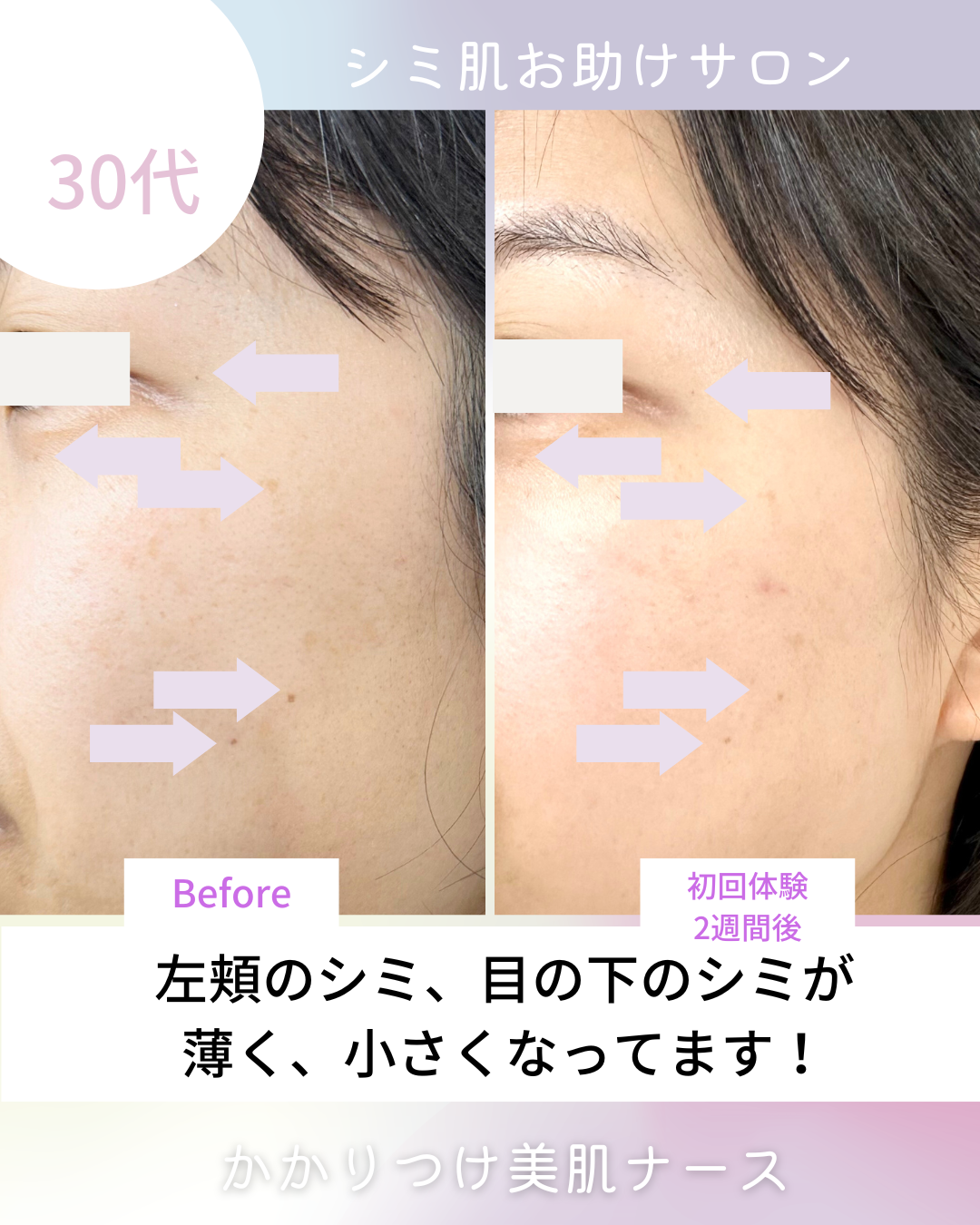 右目の下はシミ2か所なくなってますね!